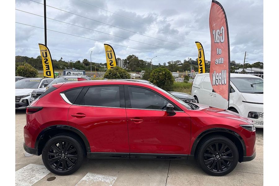 - Refined confident and quietly athletic this 2023 Mazda CX-5 G25 GT SP is the SUV that looks like it has its life together and still makes driving genuinely enjoyable FEATURING Mazdas smooth and responsive 2.5L petrol engine paired with the SKYACTIV 6 SPEED AUTO it delivers effortless performance whether youre cruising the coast or merging like a pro PLUS i-ACTIV ALL WHEEL DRIVE keeps everything planted and composed no matter what the road or weather decides to do WELL MAINTAINED and PRESENTED AS NEW this ones been treated more like a showpiece than a workhorse THE GT SP brings the good stuff with BLACKED-OUT STYLING, LEATHER APPOINTED INTERIOR, HEATED FRONT SEATS and a DRIVER-FOCUSED CABIN that makes even the school run feel first class TECH highlights include MAZDA CONNECT INFOTAINMENT with APPLE CARPLAY AND ANDROID AUTO BOSE PREMIUM AUDIO and a HEAD-UP DISPLAY because checking your speed should feel a little bit fancy SAFETY is fully loaded with RADAR CRUISE BLIND SPOT MONITORING LANE KEEP ASSIST and 360 DEGREE CAMERA support so its as smart as it is stylish A GREAT DEAL MORE with REGO and ALL ON ROAD COSTS INCLUDED Located on the beautiful Sunshine Coast we are just an hour north of Brisbane As a trusted family owned and award winning multi franchise dealership we have proudly served the Coast for over 30 years Trade ins are welcome and we offer flexible onsite finance options tailored to suit your needs From vehicle purchase to specialist aftercare protection our team is here to make your experience smooth and enjoyable With everything under one roof we truly are your one stop destination for your next car come in and see why our customers drive away smiling!
